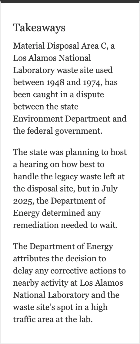 The state last year was planning to hold a public hearing in early 2026 on how to handle legacy waste left behind at Material Disposal Area C, according to a letter from an official in the Hazardous Waste Bureau.