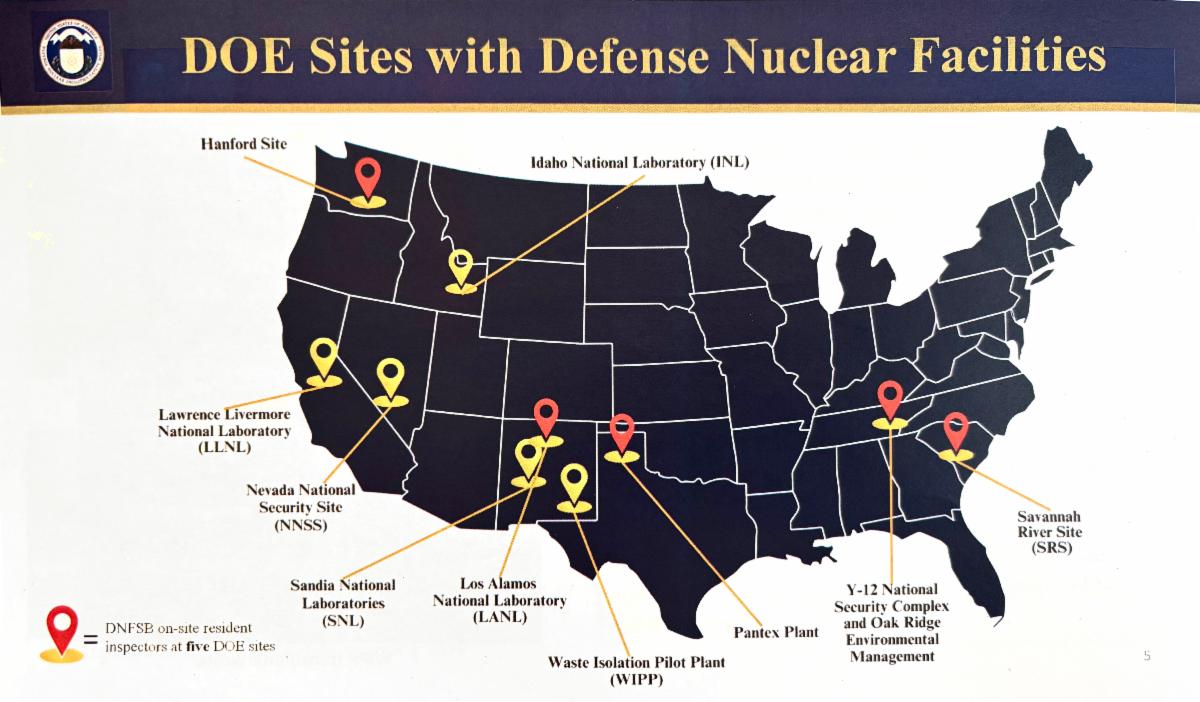The DNFSB is an independent federal agency that provides essential oversight of safety at Department of Energy (DOE) nuclear weapons research and production sites. Without a quorum, the Board cannot issue formal recommendations, conduct hearings, or hold DOE accountable for nuclear safety at the Los Alamos Lab in New Mexico, the Savannah River Site in South Carolina, and many more sites across the country.