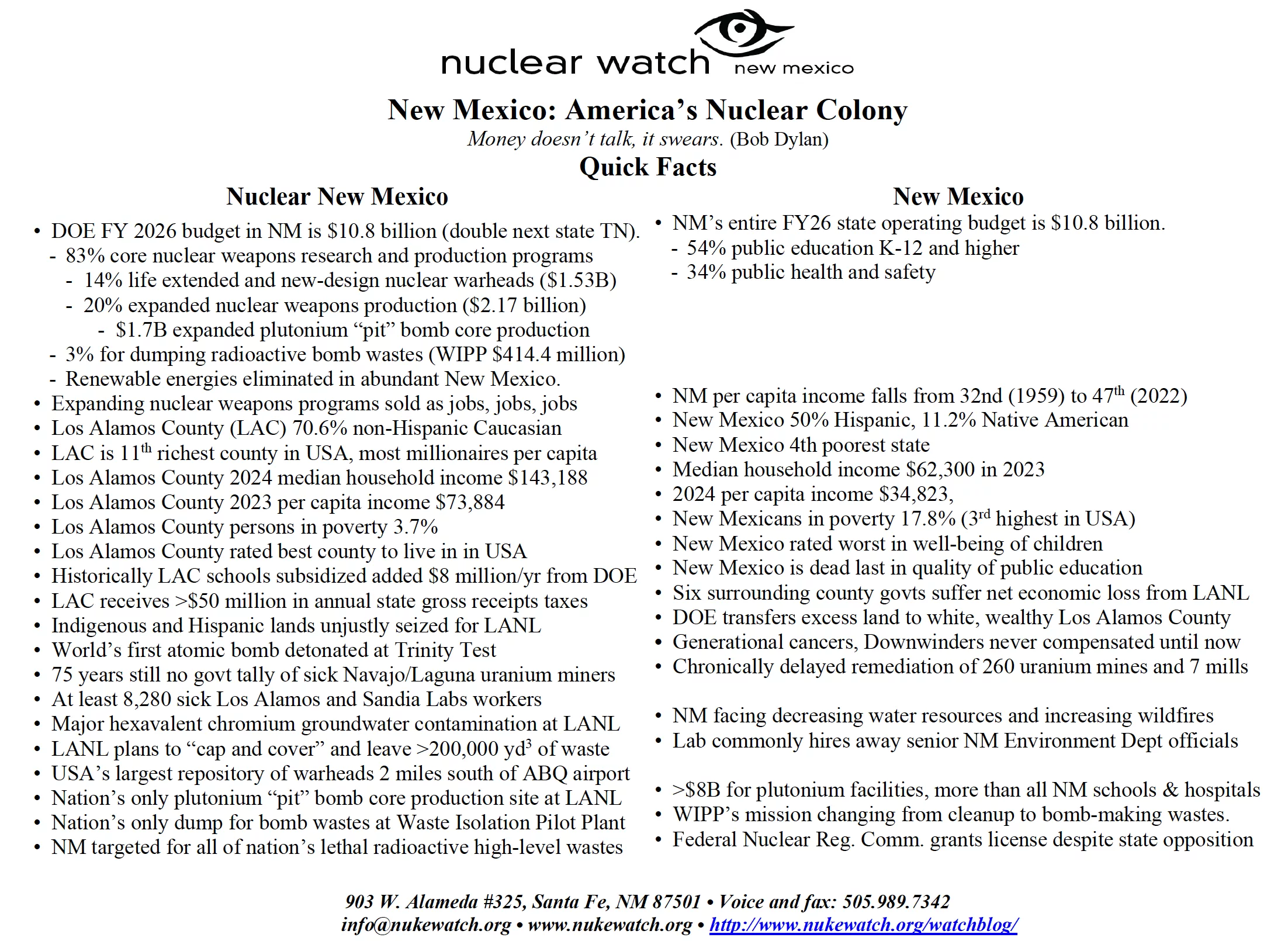 Contact: Jay Coghlan, Nuclear Watch New Mexico, 505-989-7342, jay@nukewatch.org
