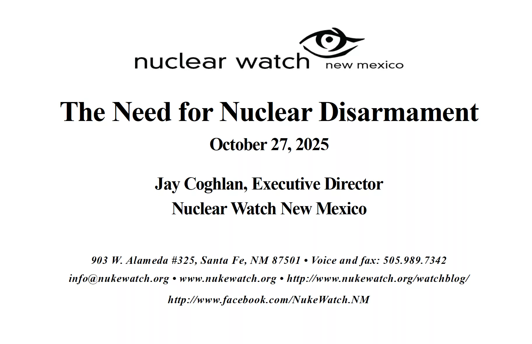Jay Coghlan, Nuclear Watch New Mexico, 505-989-7342, jay@nukewatch.org
